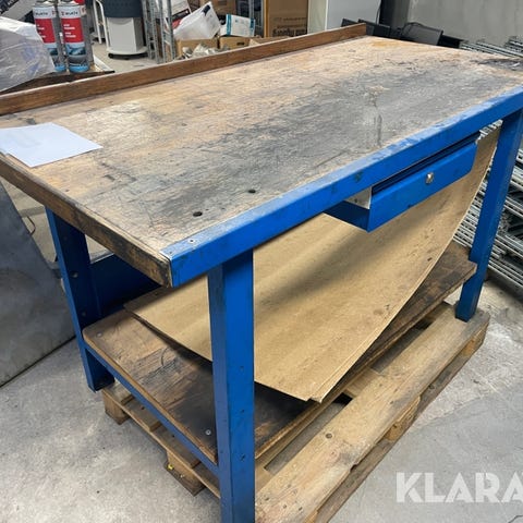 Arbejdsbord/bænk uden udstyr/tilbehør som ses på billedet, samt huller fra monter slibemaskine som ikke følger med.