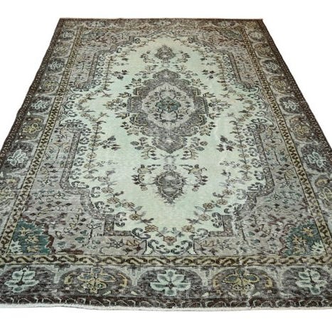 Türkiye oprindelse Royal vintage tæppe håndvævet af uld på bomuld, 286 × 166 cm, beige og turkis, 21. århundrede, i særdeles god stand og professionelt rengjort, med certifikat. Klik på den blå "gå til varen" knap, for at købe eller byde på denne vare. Den samlede pris vil blive vist inden du afgiver dit bud.