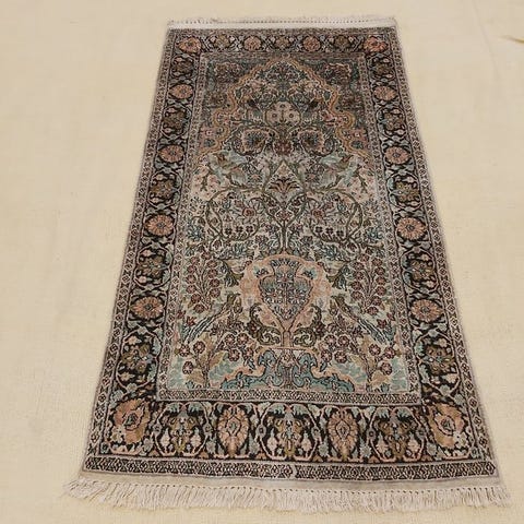 Hereke-tæppe i silke, 49 x 28 cm, håndbundet, 800.000 knuder/m²