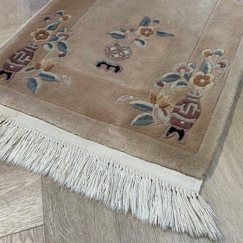 Nepalese håndknyttet tæppe, Nepal Designer 3er, uld på bomuld, oprindelse Nepal, størrelse 150 × 75 cm, to stykker, fremstillet i slutningen af det 20. århundrede, generelt god stand med alder og brugsspor, ikke professionelt rengjort. Klik på den blå "gå til varen" knap, for at købe eller byde på denne vare. Den samlede pris vil blive vist inden du afgiver dit bud.