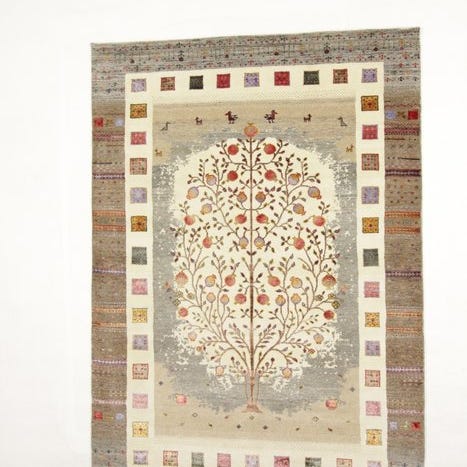 Gabbeh-teppet blev i Bhadohi i Indien håndknyttet på væve af høj kvalitet uld.