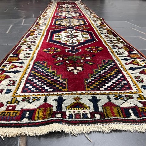 Oprindelse Tyrkiet; håndknyttet orientalsk tæppe Yahyahli, dimensioner 535 x 90 cm, uld på uld, midten af det 20. århundrede, i god stand. Klik på den blå "gå til varen" knap, for at købe eller byde på denne vare. Den samlede pris vil blive vist inden du afgiver dit bud.