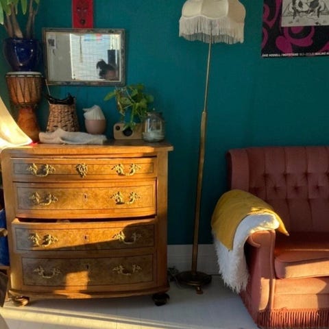 Møblet er blevet behandlet mod møl, og der er foretaget en restaurering ved et hængsel (se billeder).
