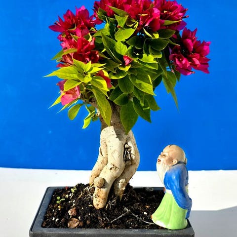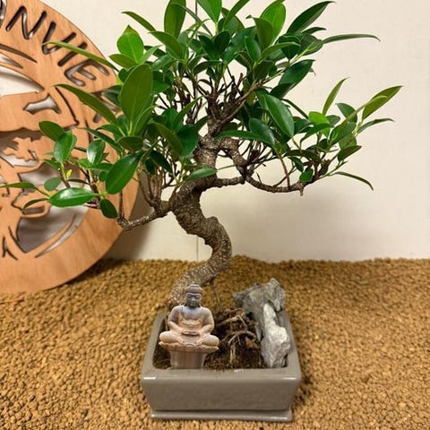 Med sin kompakte størrelse og kraftfulde udstråling bringer Ficus bonsai et strejf af zen ind i ethvert rum.