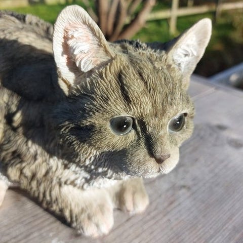 Dette er en smuk brons skulptur af en kat. En fantastisk figur af en sovende killing. Perfekt til at stille på vindueskarmen eller på skabet. Meget flot i detaljer og meget sød. Dimensionerne er som følger:
