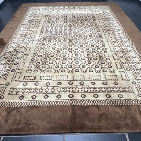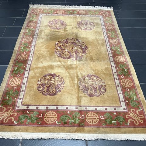 Der tilbydes et håndknyttet orientalsk tæppe fra Kina.