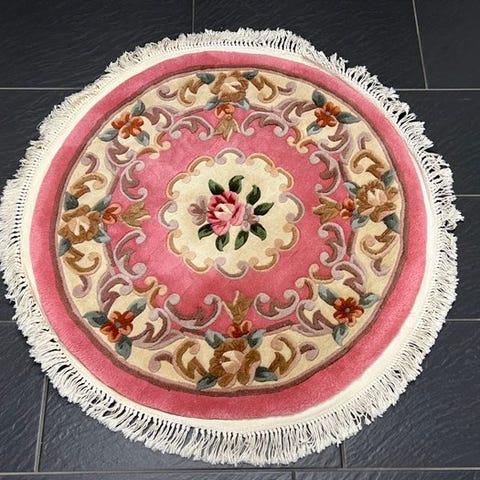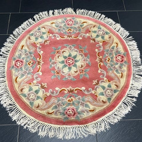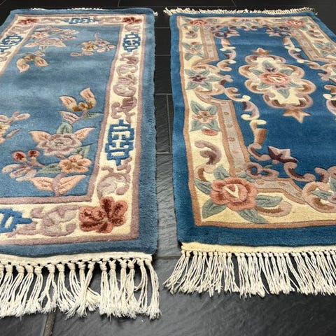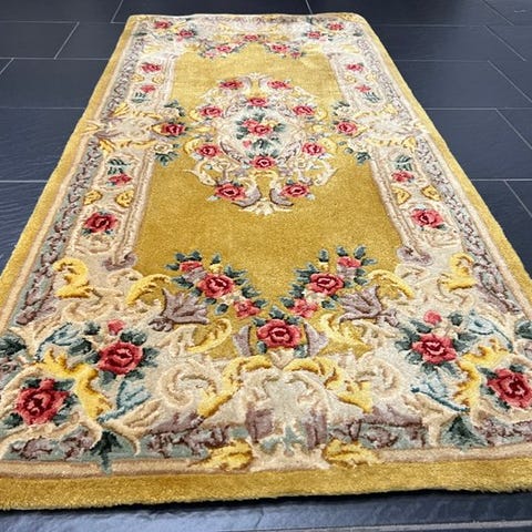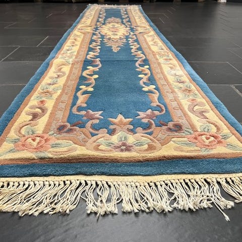 Håndvævet orientalsk tæppe fra Kina, model China Aubusson, målene 190 × 90 cm, uld på bomuld, fremstillet i midten af det tyvende århundrede, i god stand. Klik på den blå "gå til varen" knap, for at købe eller byde på denne vare. Den samlede pris vil blive vist inden du afgiver dit bud.