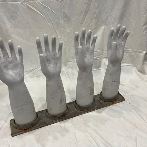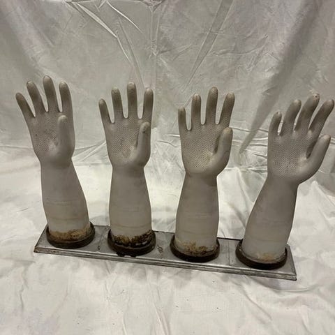 Industriel vintage dekorationsform til handsker lavet af porcelænsbiscuit.