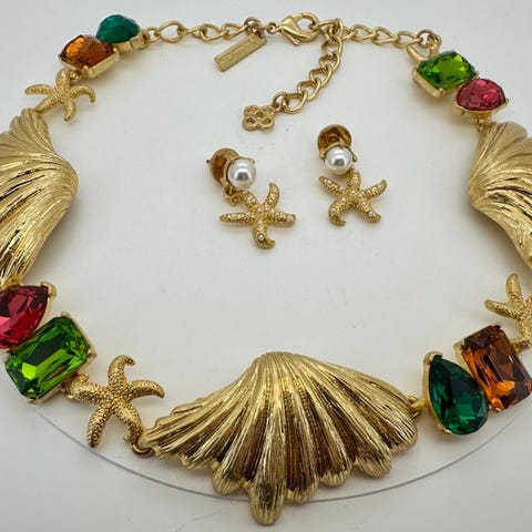 Smukt signeret Oscar de la Renta sæt, bestående af en leddet halskæde og et matchende par dinglende øreringe.