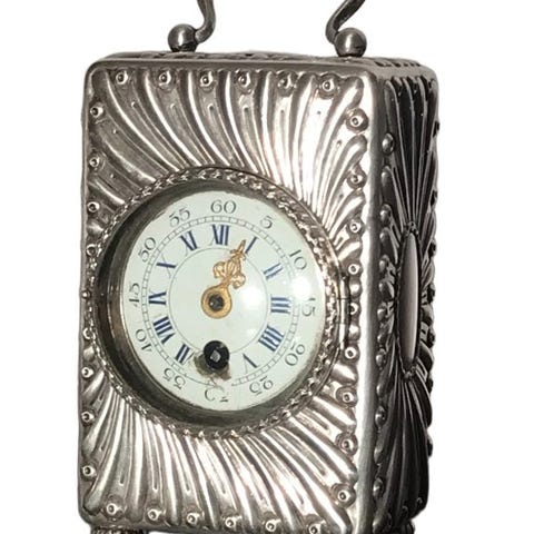 Et spansk Pedro Durán. Et elegant skrivebordsur med frontramme i massivt sølv, signeret 925/000, reliefdekoration, vækkeur, omkring 1990'erne, meget god stand.