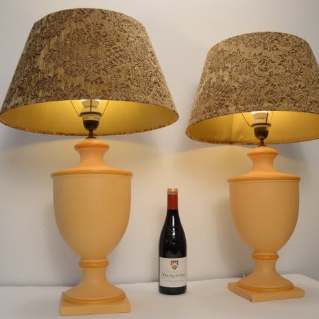 Fransk bordlampe fra Kostka France i rosa glaseret keramik med messingdele og stor silkeskærm, vintage-stil fra 1970–1980, højde 71 cm, skærm 30 cm høj og 49 cm i diameter, keramisk midterdel 20 cm i diameter og fod 13 cm i diameter, i funktion. Klik på den blå "gå til varen" knap, for at købe eller byde på denne vare. Den samlede pris vil blive vist inden du afgiver dit bud.