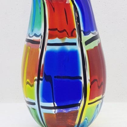 Italiensk design glasvase, ca. 23 cm høj (inklusive stopper), 10 cm i diameter, af A. Ballarin for F&M Ballarin, håndunderskrevet i bunden og med ægthedscertifikat. Klik på den blå "gå til varen" knap, for at købe eller byde på denne vare. Den samlede pris vil blive vist inden du afgiver dit bud.