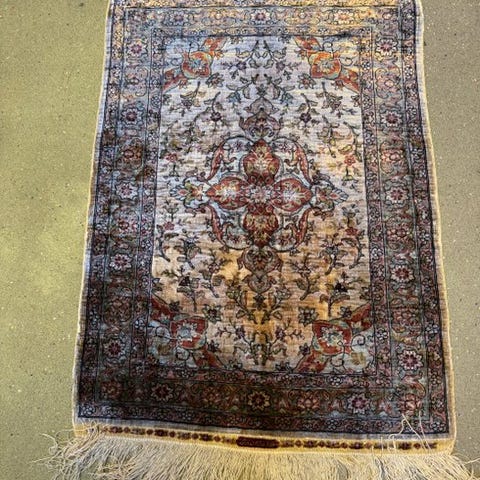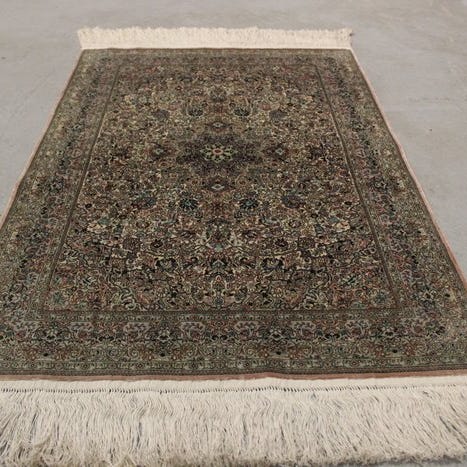 Türkiye, Pure Luxury 10/10 Quality silke-på-silke Hereke tæppe, 100 × 67 cm, ca. 1.000.000 knuder/m², signeret, fra midten af det 20. århundrede, i meget god stand og professionelt rengjort. Klik på den blå "gå til varen" knap, for at købe eller byde på denne vare. Den samlede pris vil blive vist inden du afgiver dit bud.