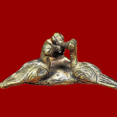Figurativt Akan-guldvægt i bronze med titel Poids à peser l'or figuratif. Gazelle., oprindelig fra Côte d’Ivoire, begyndelsen af det 20. århundrede, provenance: privat samling, vægt 44 g, mål 5,7 × 4,4 × 1,5 cm, i god stand og uden stand. Klik på den blå "gå til varen" knap, for at købe eller byde på denne vare. Den samlede pris vil blive vist inden du afgiver dit bud.