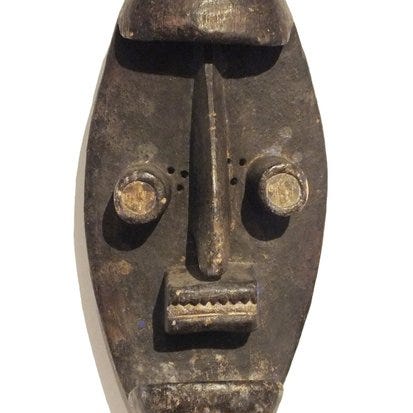Afrikansk maske fra Côte d'Ivoire i hårdt og tæt træ.