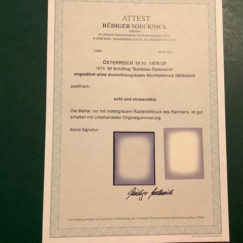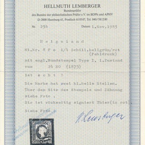 Sjælden variant, hvor den brune ramme omkring seglet mangler, med fejlfrit fotocertifikat Sœcknick fra 2019.