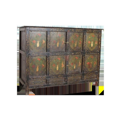 Et tibetansk trækiste alterkammer i træ fra det 19. århundrede i god stand, 116,3 cm bredt, 44,5 cm dybt og 94,5 cm højt, stammer fra Tibet og har titlen Tibetan Altar Cabinet. Klik på den blå "gå til varen" knap, for at købe eller byde på denne vare. Den samlede pris vil blive vist inden du afgiver dit bud.