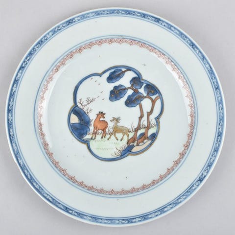 Tallerken - Assiette aux émaux de la Famille Verte à décor central d'un arbre...