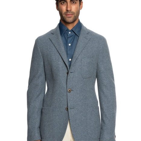Færdig med klassiske revers, påsyede lommer og enestående håndværk — ideelt til både raffineret afslappet tøj og elegante outfits.