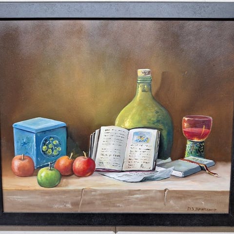 Rinus Manschot signer altid med M J Manschot. Dette maleri er lavet af