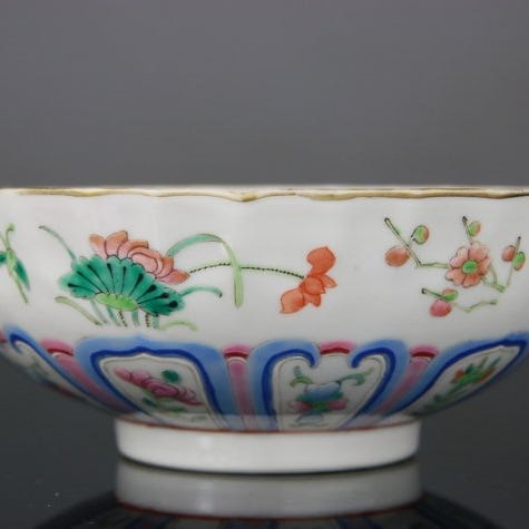 En kinesisk famille rose tallerken dekoreret med mandariner