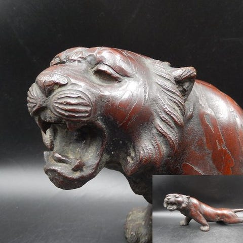 Antik kobberryger brænder af et shishi med brokadebol, dateret fra 1800-tallet til begyndelsen af 1900-tallet, med aldersrelateret slid og inkluderer den originale træopbevaringsboks; mål ca. H 19,8 cm x B 22,6 cm x D 16 cm. Klik på den blå "gå til varen" knap, for at købe eller byde på denne vare. Den samlede pris vil blive vist inden du afgiver dit bud.
