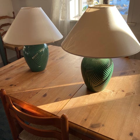 Bordlamper 2 stk. 2 bordlamper i støvet grøn plisseret skærm fod keramik/cement