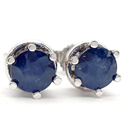 Øreringe - 14 karat Hvidguld Cordierit - Safir