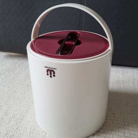 Spanden er i god stand efter alle de år, den har været brugt. Der er nogle små tegn på slid. Vi ved alle, at de aftagelige håndtag har to små mærker, hvor de rammer kroppen. Se venligst nøje på billederne. Den måler 19,5 cm i højden. Diameter 16 cm. Vægt 1,7 kg.