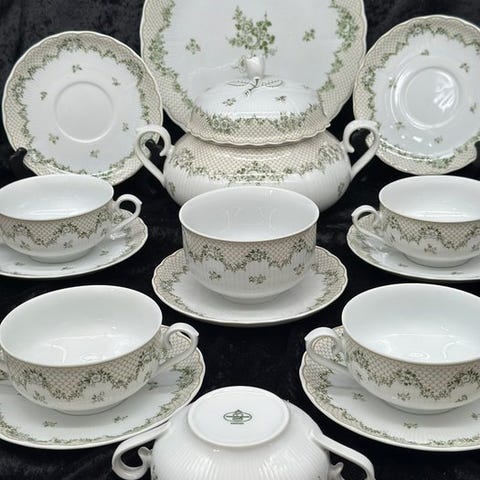 Et smukt, elegant service fra den førende tyske porcelænsfabrik med smuk, grøn dekoration med navnet Schlossgarten.