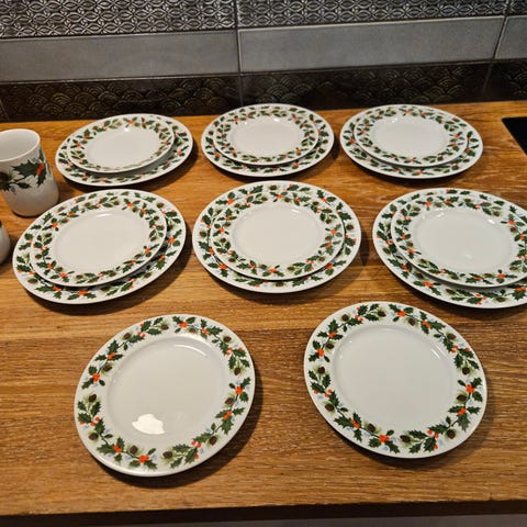 spal - Middagsservice (55) - Porcelæn, Krystal - Juledekoration med holly