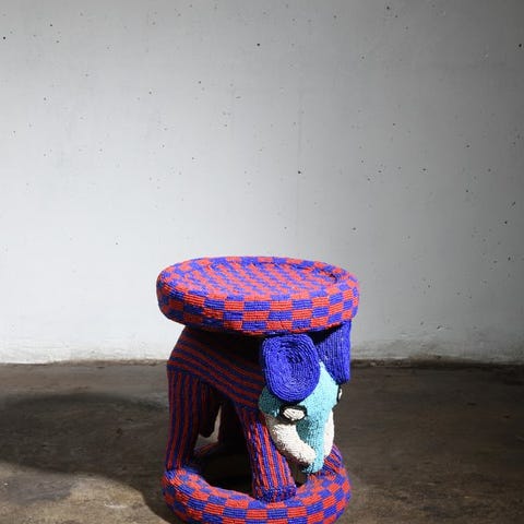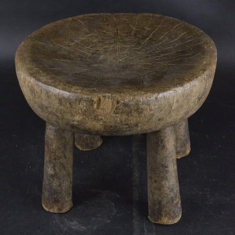 Afrikansk baoulé taburet fra Elfenbenskysten. Meget smukke geometriske former. En meget interessant taburet i form af en stiliseret skildpadde, hvor håndtaget repræsenterer dyrets hoved, benene repræsenterer benene, og sædet repræsenterer skildpaddens krop.