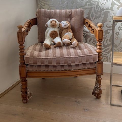 Stolen imponerer med sit fine messingstel og den højkvalitets røde samtpude.