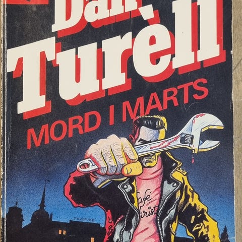 Mord i marts (1. udgave), Dan Turéll, genre: roman, Borgen 1984. 1. udgave, 1. oplag. 202 sider. Omslag med enkelt brugsspor. Diskret spor efter æseløre