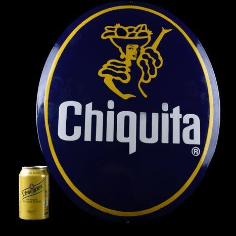 Emaljeskilt fra Chiquita, i fremragende stand, begrænset udgave (2010–2020), 50 × 40 cm, vægt 2,3 kg, ikke underskrevet, oprindelse USA. Klik på den blå "gå til varen" knap, for at købe eller byde på denne vare. Den samlede pris vil blive vist inden du afgiver dit bud.