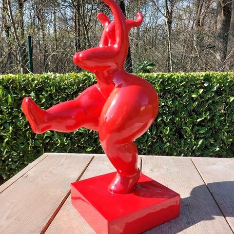 Smuk skulptur af en ung kvinde i en abstrakt fortolkning. 'Naakt in de wind'.