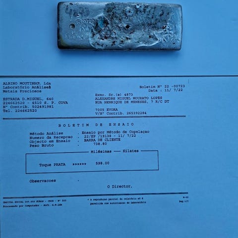 Certificering: Sømmet 'Melter Assayer' (Funditor og Assayer) og raffinaderiets logo garanterer kvaliteten og metalvægt.