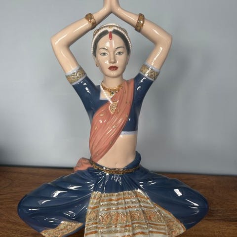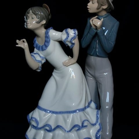 En sjælden porcelænsfigur kaldet New Horizons, designet af Virginia Gonzalez, Spanien, vintage-stil, 38 cm høj, 18,5 cm bred, 19 cm dyb, fra 1999, et arm er repareret og mangler to fingre, som beskrevet. Klik på den blå "gå til varen" knap, for at købe eller byde på denne vare. Den samlede pris vil blive vist inden du afgiver dit bud.
