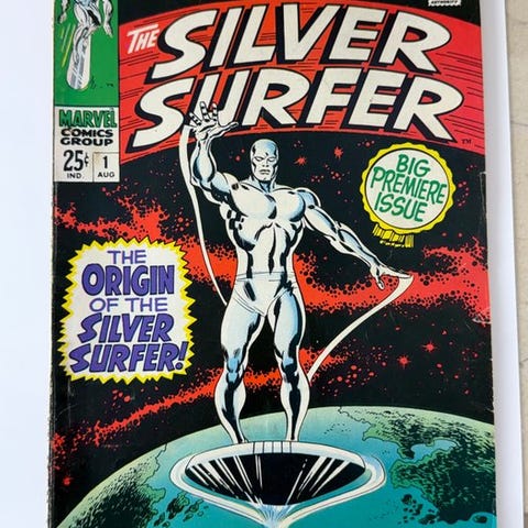 CGC 9.6 bedømt som Mint første udgave Serie Silver Surfer fra Marvel, nr. 50 (1991) med embossed sølvfolieomslag, Origin Of Silver Surfer Retold og Thanos-appearance, kunstnerne Ron Lim og Jim Starlin, på engelsk, hæftet binding. Klik på den blå "gå til varen" knap, for at købe eller byde på denne vare. Den samlede pris vil blive vist inden du afgiver dit bud.