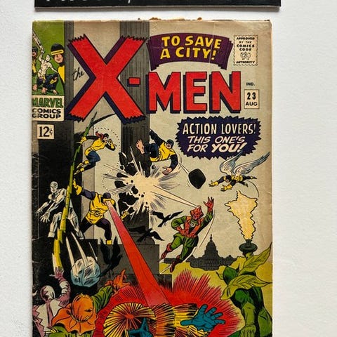X-Men nr. 36 (1967), første udgave vurderet CGC 7.0, udgivet af Marvel Comics, Mekanos første optræden, kunstnere Ross Andru, George Roussos og Roy Thomas; hæftet binding og tilstand Very Fine. Klik på den blå "gå til varen" knap, for at købe eller byde på denne vare. Den samlede pris vil blive vist inden du afgiver dit bud.