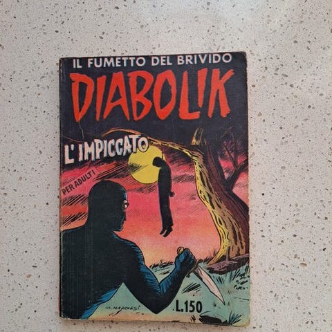 En enkelt italiensk Diabolik tegneserie med titlen 'L'arresto di Diabolik', første udgave, tegnet af Sorelle Giussani, i meget god stand. Klik på den blå "gå til varen" knap, for at købe eller byde på denne vare. Den samlede pris vil blive vist inden du afgiver dit bud.