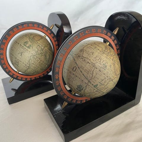 Vintage globus på bordet med astrologi og stjernetegn, 360° rotation, lavet i drejet træstruktur. Globussen er beklædt med gammelt papir, hvor samlingerne kan ses, men den er meget godt bevaret og af italiensk oprindelse. Håndlavet i træstruktur, og dens tilstand er meget god, velbevaret trods sine år. Der vedlægges et omfattende fotoreportage til vurdering og overvejelse. Der vil blive anvendt særlig emballage til destinationen. Forsendelser uden for Det Europæiske Fællesskab og Europa eller uafhængige områder er ikke inkluderet i priserne på Catawiki og vil medføre ekstra forsendelsesomkostninger.