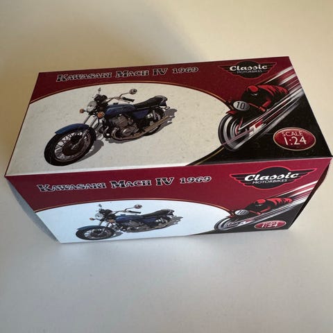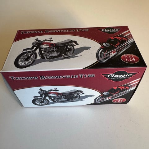 Otte nye 1:24-skala modeller af Classic, fremstillet i diecast og plastik, forskellige klassiske motorcykler, med original emballage, sælges som komplet samling. Klik på den blå "gå til varen" knap, for at købe eller byde på denne vare. Den samlede pris vil blive vist inden du afgiver dit bud.