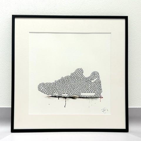 Richard Berner præsenterer Dead Man’s Shoe (all Star), Giclée fra 2018 i Pop Art-stil med grå og hvid farveskema, signeret, i begrænset oplag, 30 x 30 cm, solgt med sort ramme 41 x 41 cm. Klik på den blå "gå til varen" knap, for at købe eller byde på denne vare. Den samlede pris vil blive vist inden du afgiver dit bud.