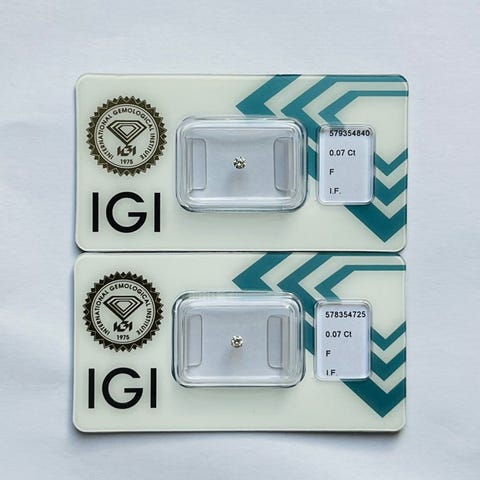 Set af 9 IGI-certificerede rund brillantdiamanter, samlet 0,80 ct, farve F-G, klarhed P1, laboratorierapport IGI 715566645, forseglet af laboratoriet og lasergravering. Klik på den blå "gå til varen" knap, for at købe eller byde på denne vare. Den samlede pris vil blive vist inden du afgiver dit bud.