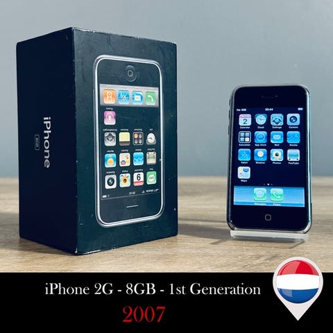 Apple iPhone første generation – 8 GB, 2007, brugt og i funktion, med synlige brugsspor, ingen tilbehør, sjældent samlerobjekt. Klik på den blå "gå til varen" knap, for at købe eller byde på denne vare. Den samlede pris vil blive vist inden du afgiver dit bud.