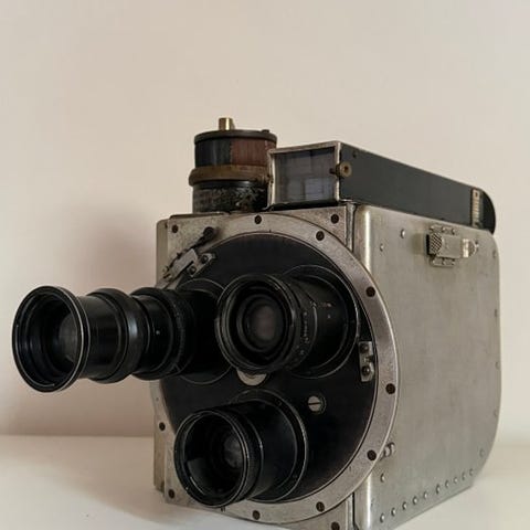 Det var en af de sjældne maskiner udstyret med gear, der tillod en mere jævn fremdrift af filmen. Dette eksemplar er i perfekt funktions- og bevarelsestilstand: ingen rust eller ubetydelige ridser på ryggen.