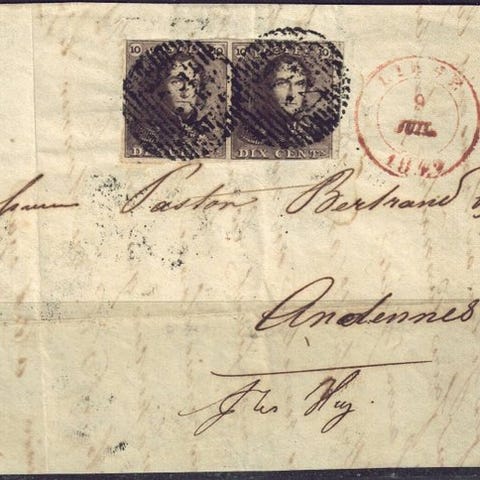 Frankrig, Lettre No 22 Tête-bêche et piquage à Cheval, postalt brug, underskrevet BEHR og certificeret BRUN-CHANDANSON. Klik på den blå "gå til varen" knap, for at købe eller byde på denne vare. Den samlede pris vil blive vist inden du afgiver dit bud.