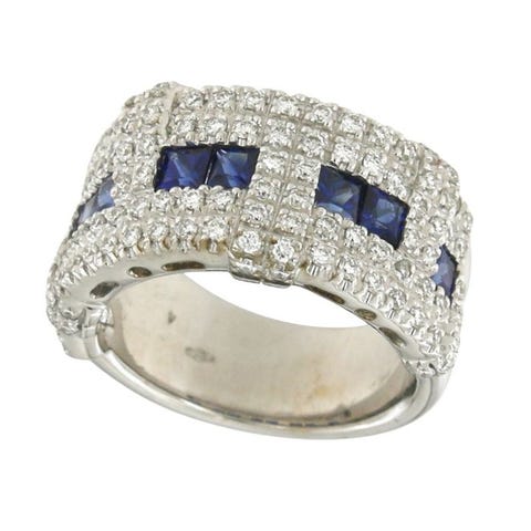 Et 18 karat hvidguld ring fra Bibigi med pavé diamanter omkring i alt 4,91 ct, farve F, klarhed SI, rund brillant snit, størrelse 56 EU, ny, lavet i Italien, uden laboratorierapport. Klik på den blå "gå til varen" knap, for at købe eller byde på denne vare. Den samlede pris vil blive vist inden du afgiver dit bud.