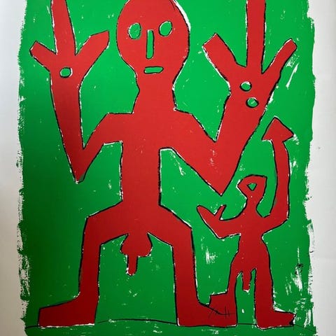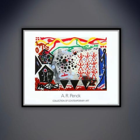 A.R. Penck (1939–2017) har skabt Revolutionary Spring, et tryk fra 1989, håndsigneret og nummereret, begrænset til 25 eksemplarer, 54 × 68 cm, Tyskland, Neo‑Ekspressionisme. Klik på den blå "gå til varen" knap, for at købe eller byde på denne vare. Den samlede pris vil blive vist inden du afgiver dit bud.